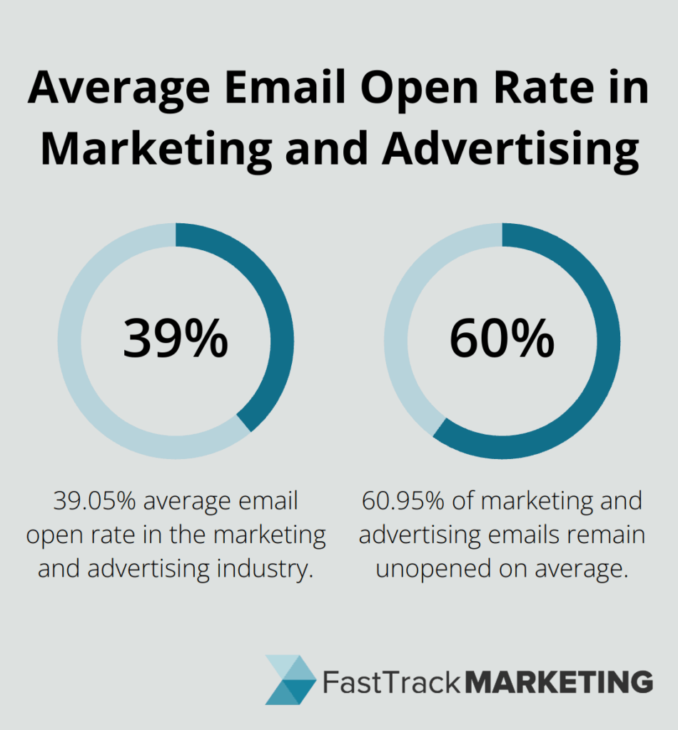 Once you’ve built your list, create emails that resonate with your audience and drive action. Start with attention-grabbing subject lines. The average email open rate in the marketing and advertising industry is 39.05%. Use power words, create a sense of urgency, or pique curiosity to boost open rates.