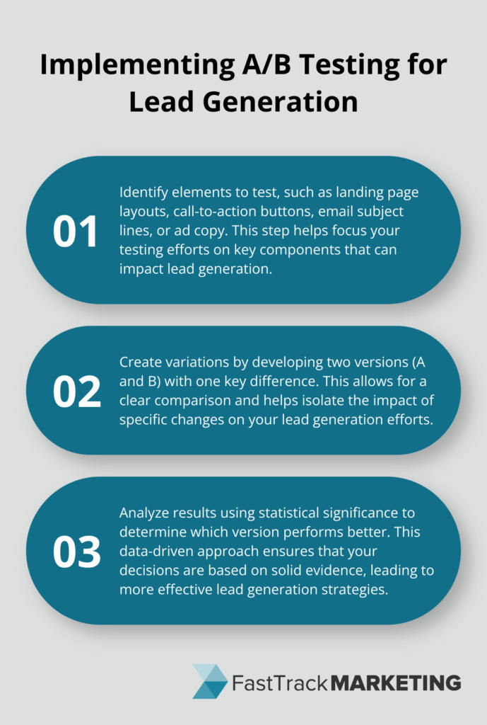 A/B testing optimizes lead generation. Follow these steps: